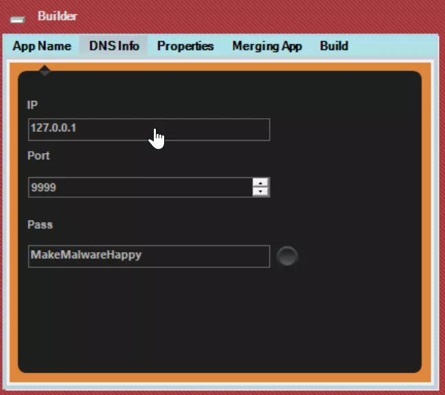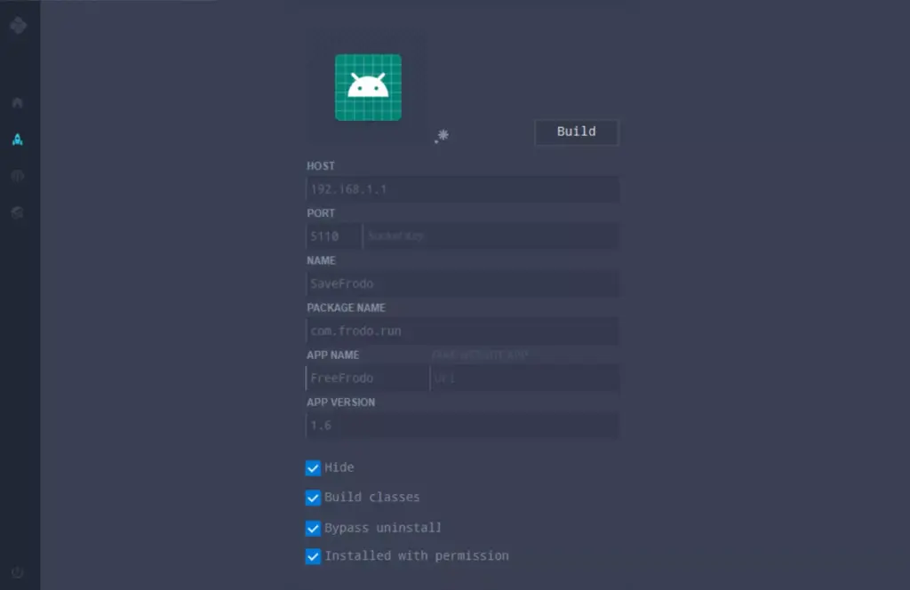 Niezależnie od wariantu kluczowym komponentem panelu administracyjnego jest moduł buildera, który umożliwia generowanie dopasowanych i unikalnych próbek malware w postaci plików APK. Builder pozwala operatorowi zdefiniować podstawowe parametry złośliwej aplikacji, w tym nazwę wyświetlaną użytkownikowi, nazwę pakietu oraz identyfikatory komponentów, co umożliwia maskowanie malware jako legalnego oprogramowania. Na tym etapie określana jest również nazwa procesu oraz dane infrastruktury sterującej. W szczególności adres IP lub domena serwera C2 oraz port komunikacyjny, z którym aplikacja będzie się łączyć po uruchomieniu na urządzeniu ofiary. Niektóre wersje buildera wspierają generowanie wielu wariantów tej samej próbki (polimorfizm), co znacząco utrudnia klasyczne wykrywanie sygnaturowe.