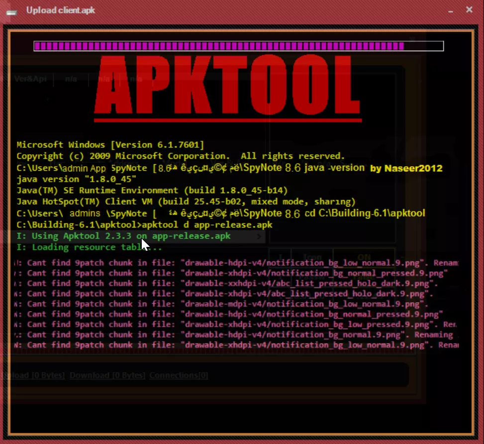 Z perspektywy technicznej panel administracyjny SpyNote jest aplikacją desktopową napisaną w technologii .NET. Do procesu budowy plików APK wykorzystywane są narzędzia zewnętrzne, w szczególności apktool, który służy do dekompilacji, modyfikacji oraz ponownej kompilacji pakietów Android. Integracja buildera z apktool pozwala operatorom generować nowe warianty bez znajomości programowania, automatyzując wstrzyknięcie konfiguracji oraz ukrycie kodu RAT.