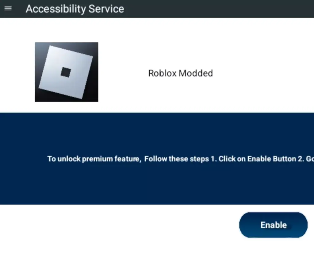 Rys. 9. Przykład ekranu – akceptacja Accessibility Service (na przykładzie aplikacji Roblox Modded.apk)