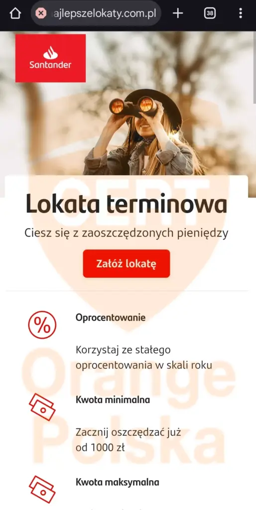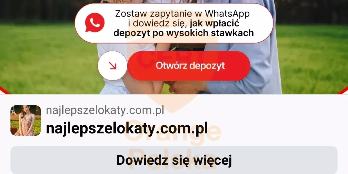 CERT Orange Polska zaobserwował nowy schemat oszustwa. Początek ma ono – jak znaczna większość sieciowych scamów – w postaci reklamy na Facebooku. Motywem jest fałszywa lokata bankowa.