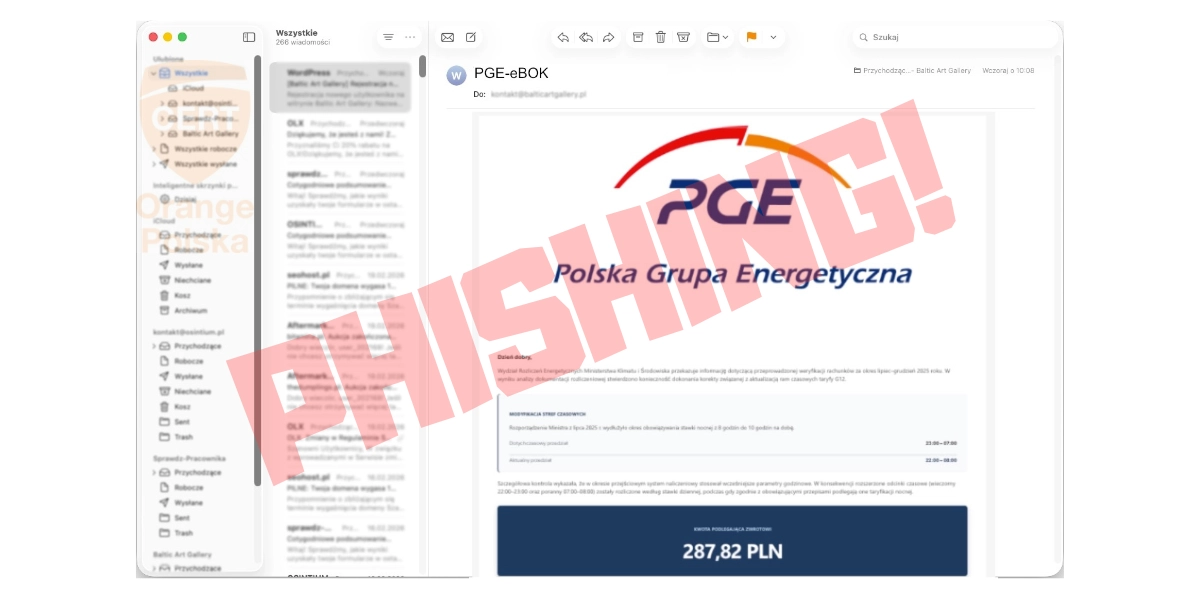 Phishing na PGE – „zamrożenie cen i korekta naliczenia opłaty”