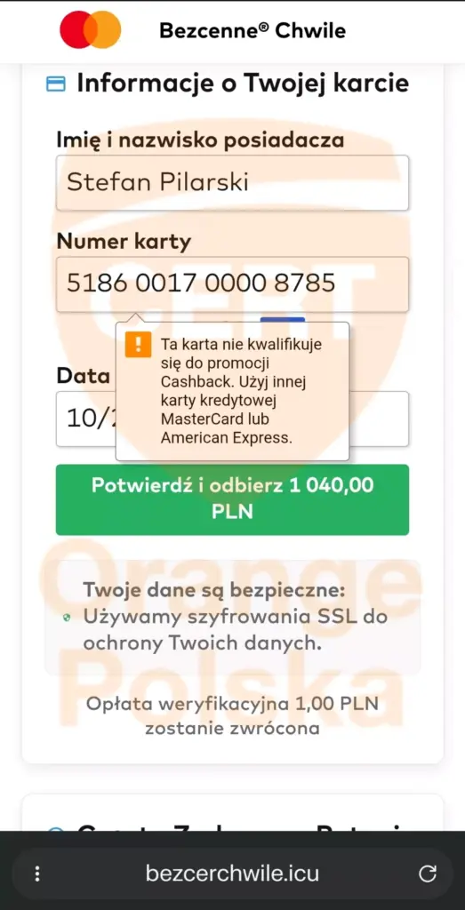 Co więcej – dowiadujemy się, że z cashbacku w ramach programu Bezcenne Chwile mogą korzystać tylko posiadacze kart kredytowych. Dlaczego przestępcy to zaznaczyli? Ponieważ kartę debetową można okraść tylko do wysokości bilansu konta, zaś kredytowe zazwyczaj mają dużo większe limity!