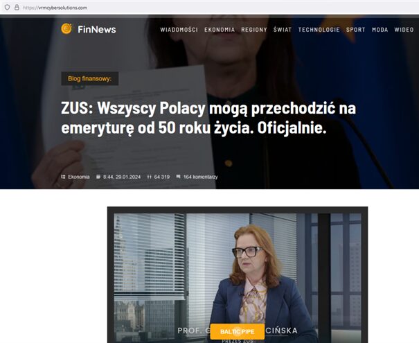 - Bardzo często reklama sugeruje inwestycje w dobra naturalne, a strona docelowa okazuje się być (fałszywą) giełdą kryptowalut